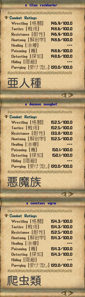 ※エレメンタル→火。亜人族/悪魔族/爬虫類→物理?
