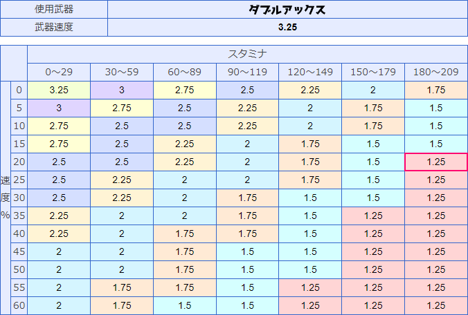 アクセサリーの片方を速度10+武器ダメージ25%にして街恩恵の速度+5を貰えば3.25速度の武器も最速振りが達成出来るよ!