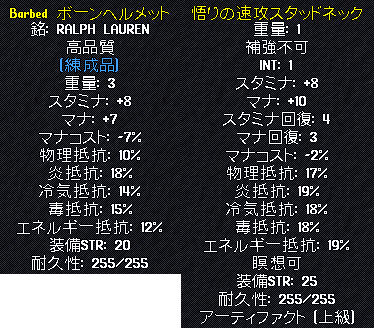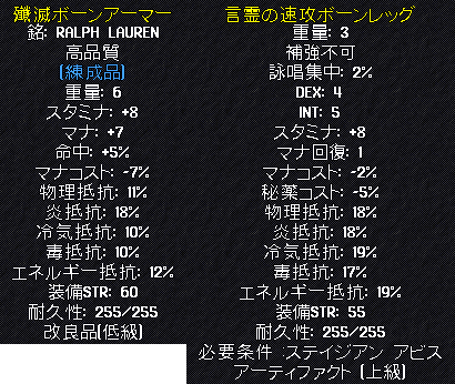鉄防具と比べてダメージを受けた時のスタミナ減少値が少し多めだけど...